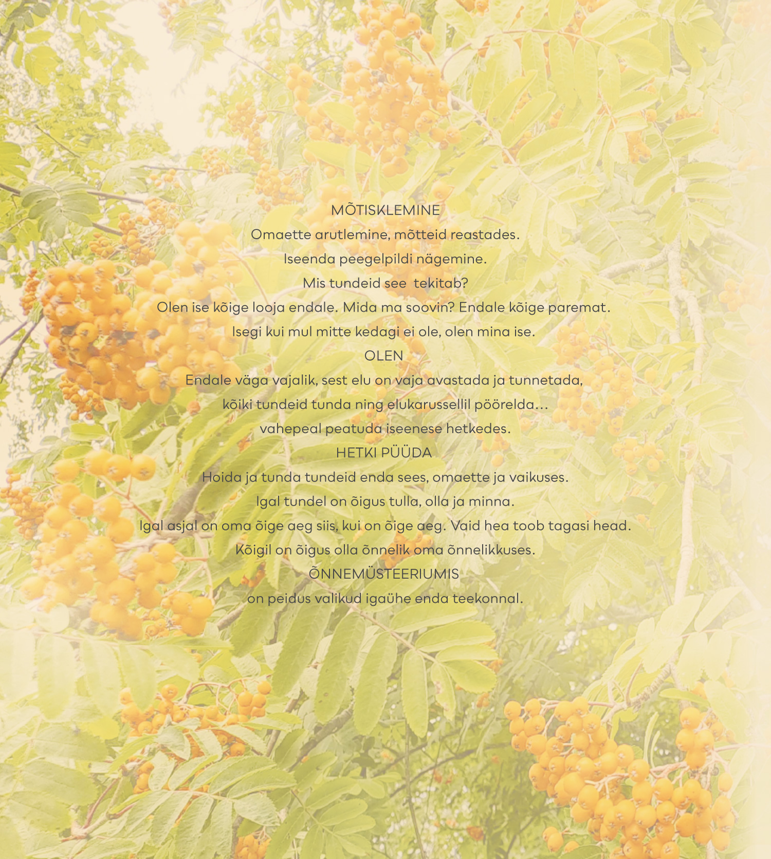 Liina Ellik-Küberi uus raamat „Õnnemüsteerium“ ühendab endas teksti, muusika ja looduspildid, luues tervikliku ja hinge soojendava elamuse. Teos sündis koostöös mitme loovisikuga ning kannab sõnumit enesetunnetuse, heaolu ja õnne leidmisest läbi loovuse ja teadliku valiku.
